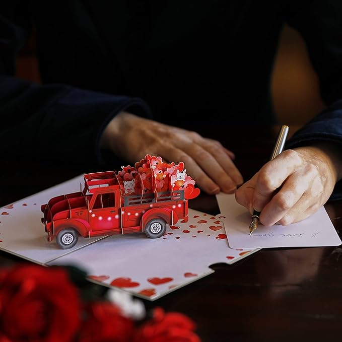 - CREATE A MAGICAL MOMENT FOR YOUR LOVED ONE: Give a thoughtful card to your husband, wife, or that special person you love with the 5" x 7" Lovepop Love Delivery Truck Pop-Up Card. Features an intricately detailed red truck with flowers in the bed. Perfect anniversary, birthday, or just because card.