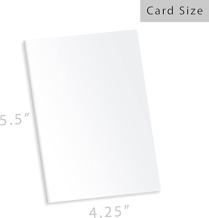 - SMALL CARD WITH A LARGE IMPACT - Card size is 5.5” x 4.25”. Inside of card features illsutrations and additional space for you to write your own personalized message. Printed on premium thick cardstock with a smooth matte finish on the inside for easy writing. Each card comes with a white envelope and self seal. No need for licking!