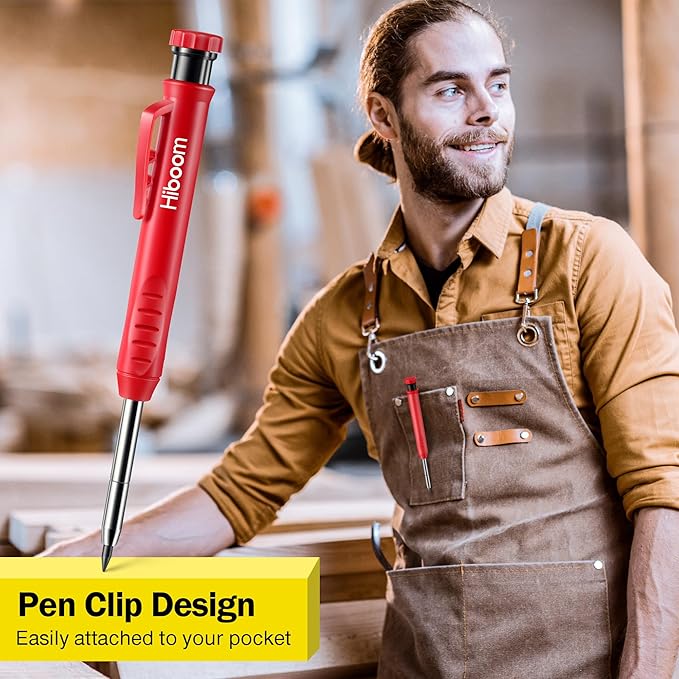 - Mechanical pencil: the carpenters pencil do not slip out of the fingers and repetitive tracings cause less pain; The pen clip design can be easily attached to the pocket, easy to use and not easy to lose, gaining in efficiency, proper for construction and bricklayers