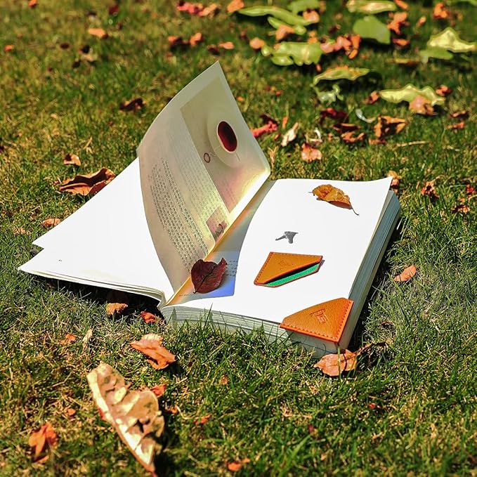 - 【HIGH QUALITY MATERIAL】Each corner bookmark is made of high quality cruelty-free Vegan leather, no bad smell. The touch of leather is as comfortable as leather. Each edge adopts the same color of edge oil to make every corner of the bookmark very smooth and exquisite. This is not a process that all brand bookmarks will do. Our bookmarks are durable designed with fine sewing method, not easy to loosen and wear, and can be used for a long time.