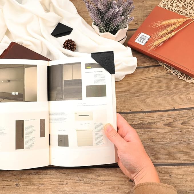 - 【HIGH QUALITY MATERIAL】Each corner page marker is made of high quality cruelty-free Vegan leather, no bad smell. The touch of leather is as comfortable as leather. Each edge adopts the same color of edge oil to make every corner of the bookmark very smooth and exquisite. This is not a process that all brand bookmarks will do. Our bookmarks are durable designed with fine sewing method, not easy to loosen and wear, and can be used for a long time.