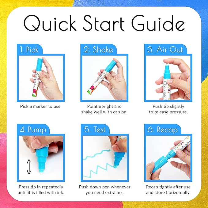 - Non-Toxic, Mess-Free - These liquid chalk markers are washable, dustless, non-toxic and safe for use at home.