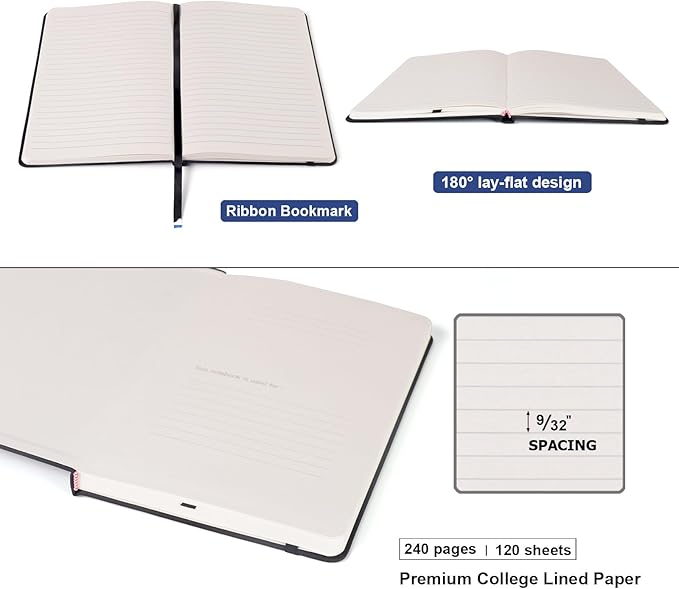 - 【Lay-Flat Binding】Lay-flat spine design with reinforced thread-binding ensures seamless writing across 240 pages (120 sheets) without mid-page gaps.
