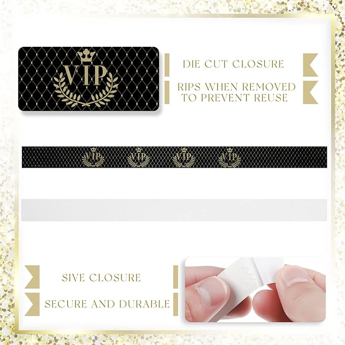 - Proper Size for Most People: these VIP bracelets are about 9.84 inches long and 1.2 inches wide, suitable for both men and women; There is non stick glue on the wristbands, and the glue length is 3 cm/ 1.18 inches, so you can easily adjust the size to find the right fit for your wrist