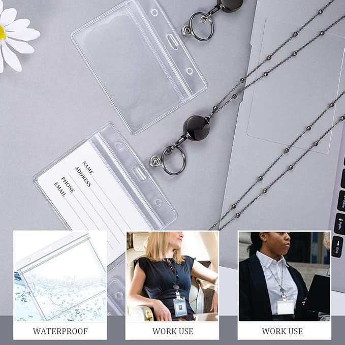 - 【Value Combination】3 Pcs black beaded badge lanyards; 3 pcs retractable reel clip; 6 pcs waterproof badge holders, horizontal and vertical two styles, easily meet your different needs