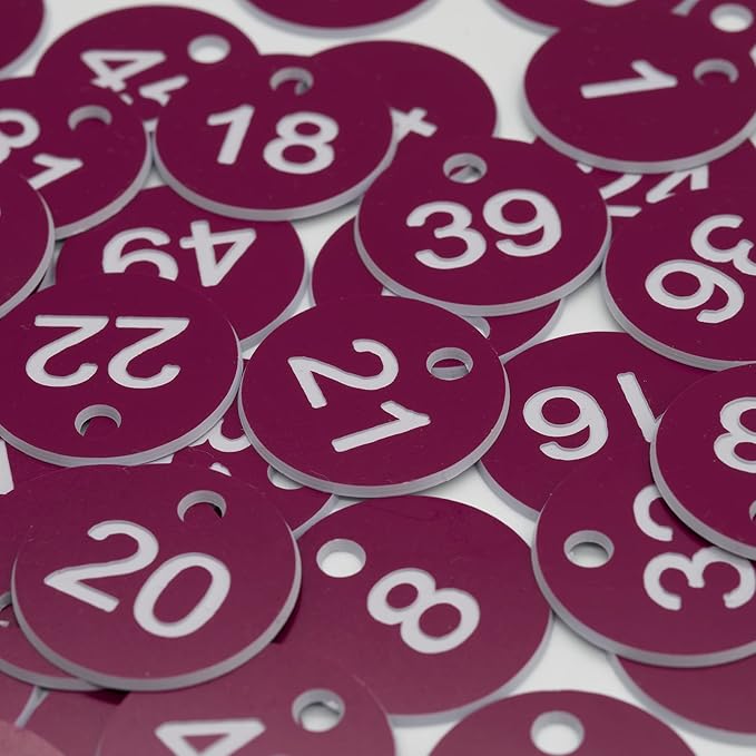 StayMax Plastic ID Number Tags Engraved Tags Key Tags Without Key Rings (1-100, Purple)