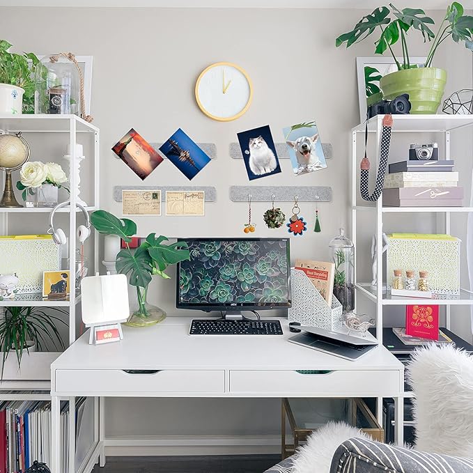 - 【Widely application】:Our 5 pack felt pin board bar strips can be used in different occasions to display pictures, notes, schedules, reminders ,what's more, you can also hang pendants like keys and necklaces.Feel free to use on the door, closet,refrigerator, bookcase, mirror, etc.