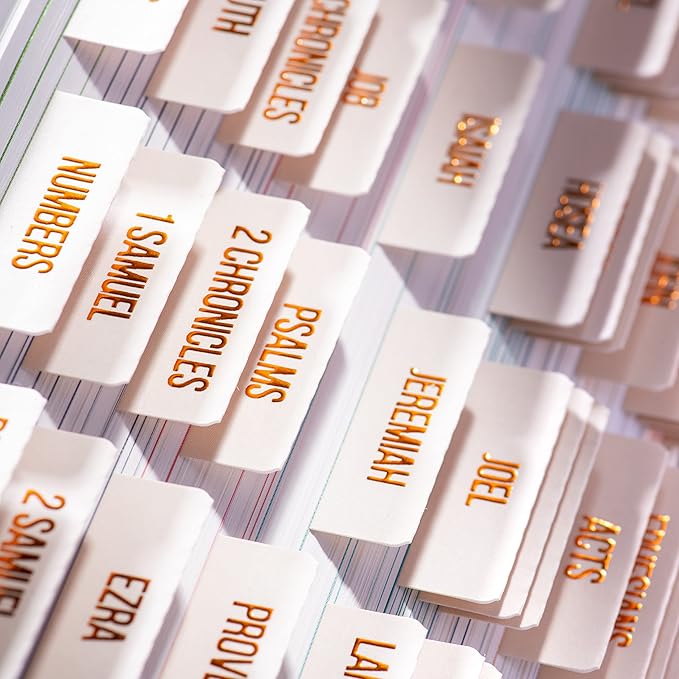 DiverseBee Laminated Bible Tabs (Copper Embossed Lettering), Bible Journaling Supplies, Bible Book Tabs, Christian Gift, 73 Bible Tabs for Women and Men, Includes 4 Blank Tabs (Alabaster)