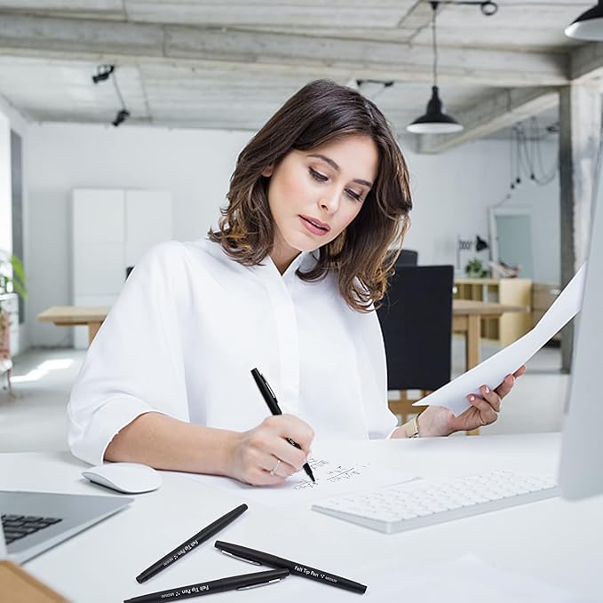 Lelix Felt Tip Pens, 30 Black Pens, 0.7mm Medium Point Felt Pens, Felt Tip Markers Pens for Journaling, Writing, Note Taking, Planner, Perfect for Art Office and School Supplies