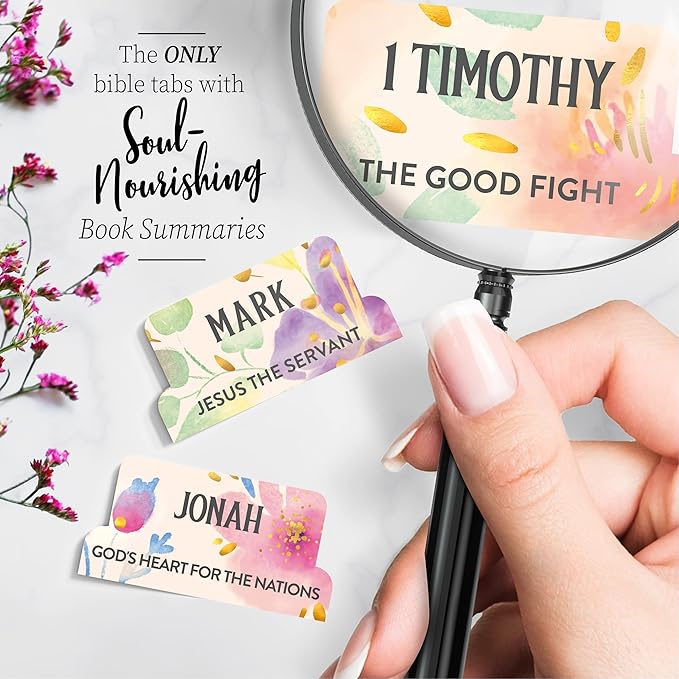 Gold Floral Bible Tabs for Women - Soul Nourishing Book Summaries - 66 Peel-and-Stick Large Print Laminated Bible Tabs | Bible Study Supplies Pink, Journaling Accessories, Gifts, The Shepherd of Life