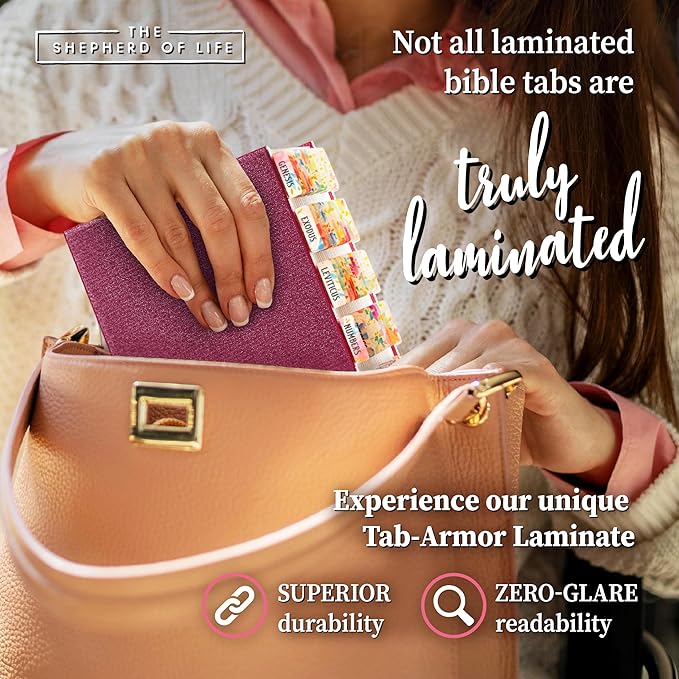 - 💖 SILKY VELVET TOUCH LAMINATE - LIGHTWEIGHT, NON-FLIMSY & DURABLE: While most laminated Bible Tabs are too flimsy, or add a ton of weight, these Tabs for Bible are just right, and covered in fine, silky-soft lamination so you can easily locate scriptures without feeling like your favorite book is too heavy, or diminished by gaudy plastic