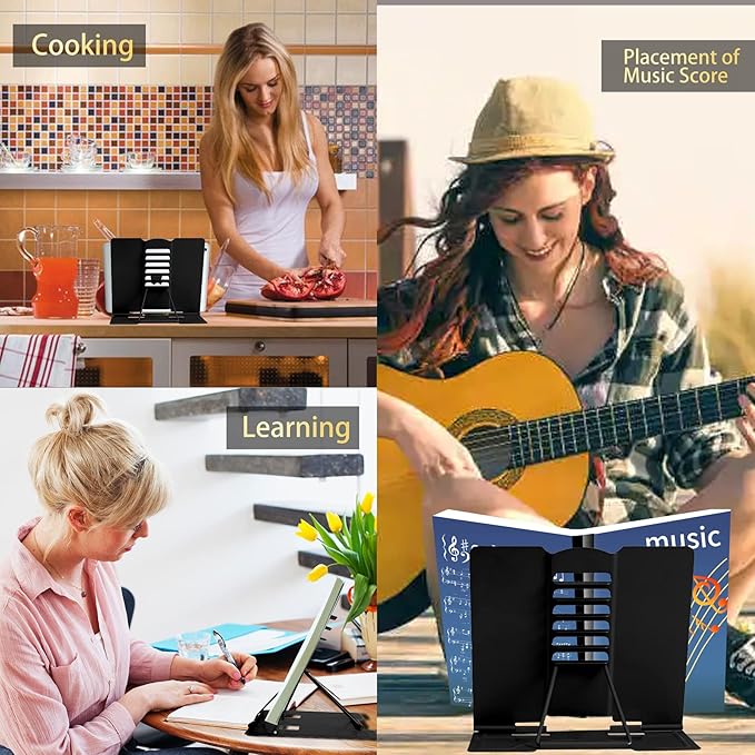 - 【Book Holder for Reading】The book holder is designed for keeping your hands-free when we are reading cookbook magazine painting papers documents text books sheet music catalogs notetablet or iPad. Support thicker books in school library dorm office or any other desktop.
