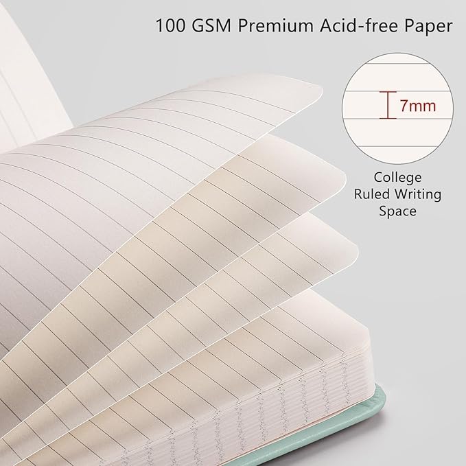 - LINED JOURNAL NOTEBOOK: RETTACY Lined Journal Notebook comes in a A5 (5.7'' × 8.3'') size, 192 Numbered Pages, waterproof and smooth Leather Hardcover, 7 mm college ruled writing space, 100 GSM Thick Acid-free Paper, Pen Holder, Elastic Closure Band, 2 Ribbon Bookmarks, Inner Pocket, Sticky Notes