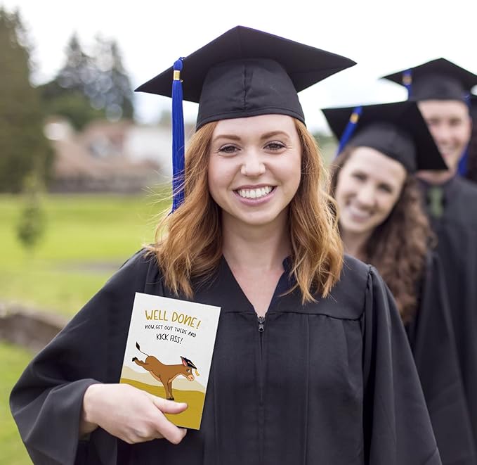 - PERFECT GRADUATION GIFTS: A perfect gift for anyone college senior junior graduate.Funny graduation card is blank inside and the cover with word"WELL DONE now,get out there and kick ass".