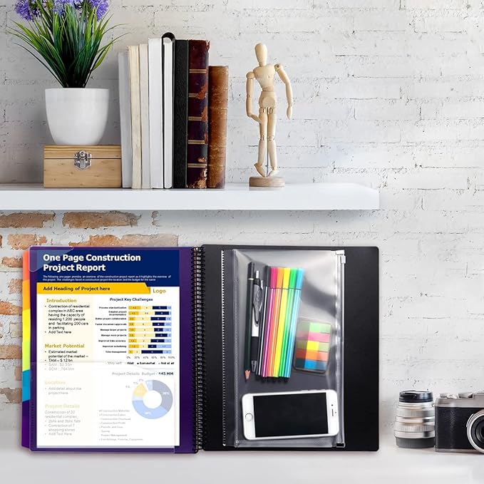 - Durable poly material is tear and water resistant, spiral binding construction can keep this project organizer laying flat and stay open
