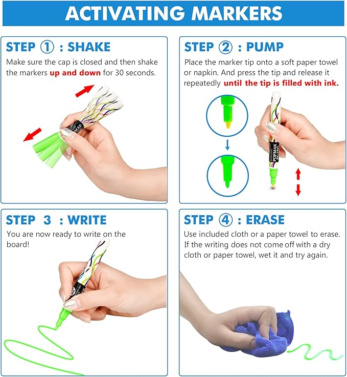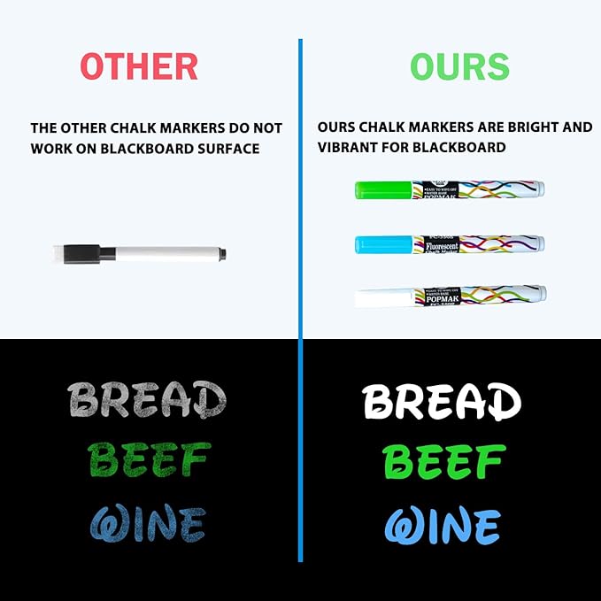 - Bright and Vibrant Chalk Markers - Our magnetic fridge dry erase board bundle includes 3 different colors of chalk markers. The colors are super bright and look great up against the black magnet board sheet, which is easier to read, PLEASE Follow The Instruction for Chalk Markers