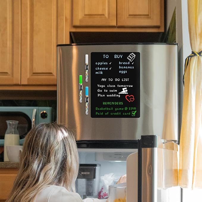 - Stay Organized and Don't Forget - No Need to dig through a junk drawer in search of a piece of paper and pen, the magnetic black whiteboard can help you be organized. perfect for family planner, grocery shopping list, to-do list, meal planner, freezer inventory, random appointment, kids doodle, notes for anything you need to keep track of ! the flexible writing board is reusable, so you just need to wipe it clean and then write down your plans again