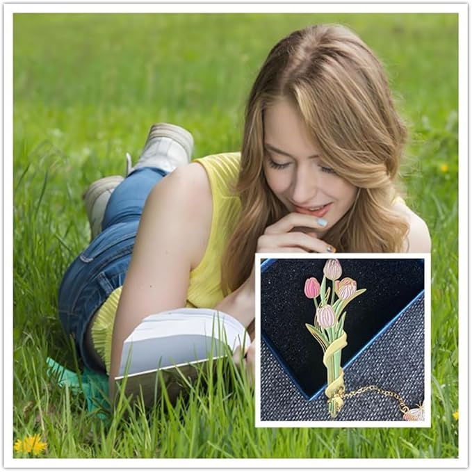 Bookmarks for Book Lovers Book Marks for Reading Women Birthday Graduation Christmas Gifts for Her Cute Metal Bookmark Book Markers Stocking Stuffers for Teens (Tulip)