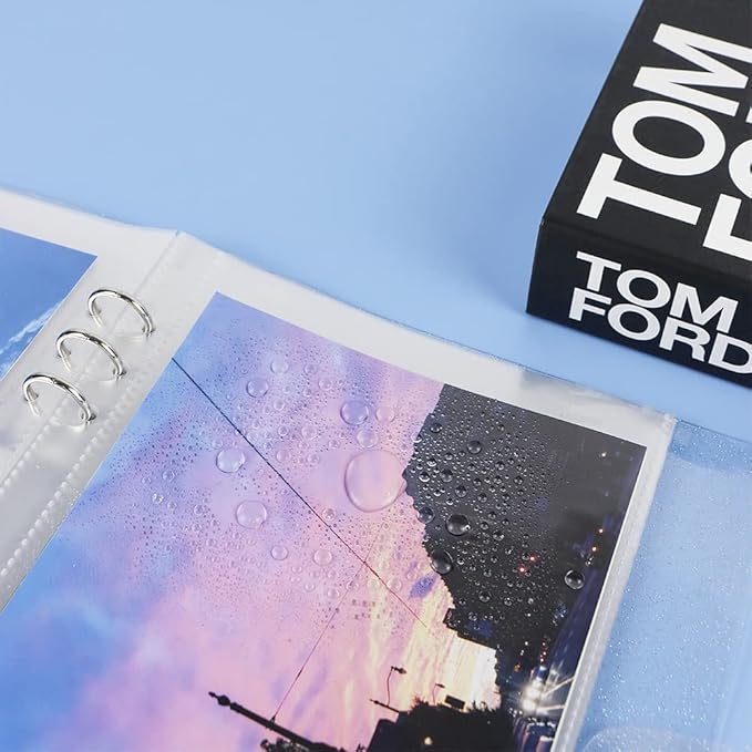 - 4.MEASUREMENT--180mm x 225mm(7.09" x 8.86") photo album pages and 210mm x 239mm(8.27" x 9.41") 6 ring photo sleeve binder. The 160mm x 180mm(6.3" x 8.66") Pockets perfect for 8inch or small photos and cards, 1 pockets per page. You can easily insert photos and cards in the photo sleeves.