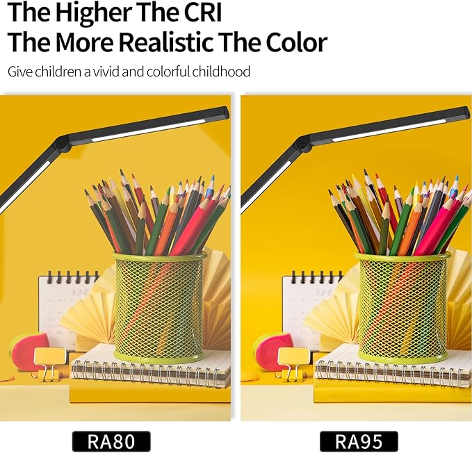 - 【Dual Light Source Design, CRI=95】Micomlan swing arms led desk light with dual light source, which can evenly illuminate the entire desktop workbench. The desk lamp offers a nature and soft light colse to the sunlight, CRI=95. No flicker, no glare, less blue light hazard. You won't get tired with prolonged use.