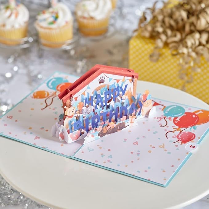 Lovepop Birthday Pop-Up Card for Her, Him, Men, Women - 3D Animal Greeting Cards - It's Pawty Time - 5" x 7" - Blank Notecard & Envelope Included