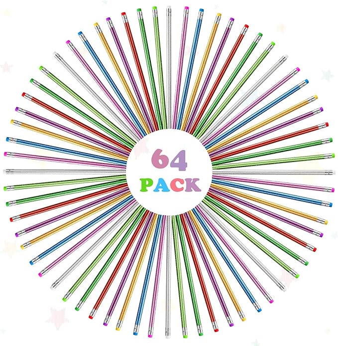 - What you receive: the package contains 64 pieces glitter colored pencils with 8 different colors and 8 pieces in each color, 4 pieces pencil sharpeners, enough for you to use and satisfy your painting needs;the pencil exterior is inlaid with gold powder, and a layer of film is wrapped around the gold powder to ensure that your hands will not stick to the gold powder;Notice:Refill is graphite