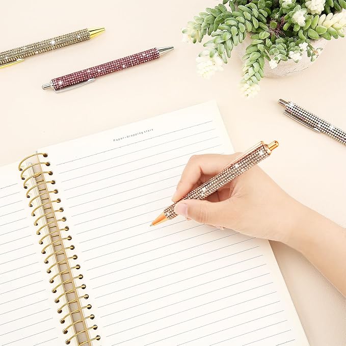 - You Will Get: the package contains 4 black ink pens in gold, silver, pink and rose gold casing and 4 black refills, the barrel of the pen is inlaid with rhinestones to make the barrel less slippery and easier to hold with your fingers for more stable writing