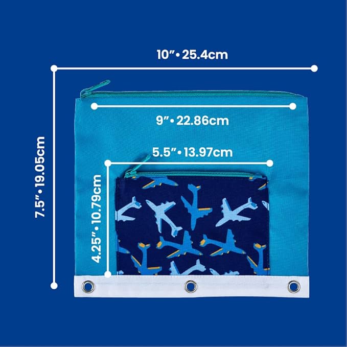 It's Academic Pencil Pouch for 3-Ring Binder, 2-Pockets with Zipper, for School Supplies, Large & Mini Pouch, Navy & Jets Design, 2-Pack