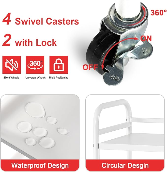 - Multifunctional Rolling Cart:Equipped with 4 wheels (2 lockable) and circular handle design make it easy & convenient to keep the cart roll it around to anywhere you need or place in a permanent place.