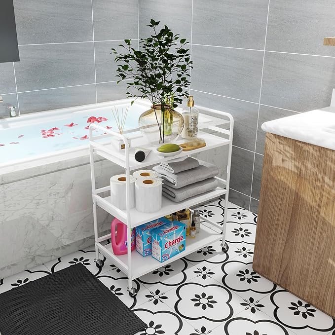 - All Metal Storage Trolley:This 3 tier rolling cart is made of all steell,which is easy to clean and durablle for years.