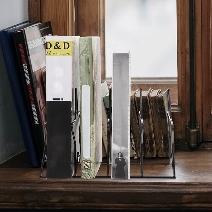 - ✨【Record Holder for Albums】The bookend is designed to stay in place and prevent books from moving, protecting your desktop or shelf from scratches caused by rubbing. With its sleek and modern design, the bookend is a practical and stylish addition to any space. Whether you need to organize your bookshelf or keep your books in place, this bookend is the solution.