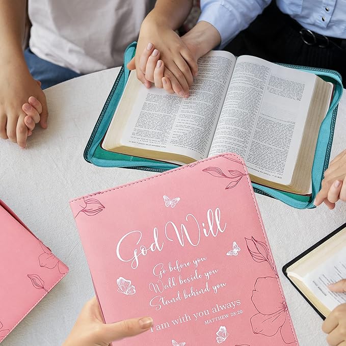- BRIEFCASE LARGE & MEDIUM SIZES: Our Pink briefcase for women measures itself 11 x 7,6 x 2.3 inches and fits book up to 7 x 10.1 x 1.9 inches; The Bible carrying case has loop inside for a pen so you can take notes as you read the Scripture