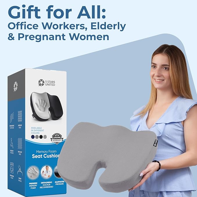 5 STARS UNITED Seat Cushion for Desk Chair - Tailbone, Coccyx Sciatica Pain Relief - Office Chair Cushions - Wheelchair Cushions - Car Seat Cushions - Pressure Relief Lifting Cushions