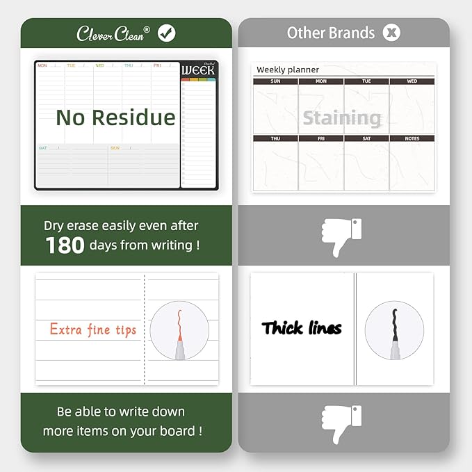 - Fine-point markers included – We also provide 6 extra-fine point markers with different colors, so you may use your own color coding. All the markers are magnetic, so you can just hang them on the fridge.