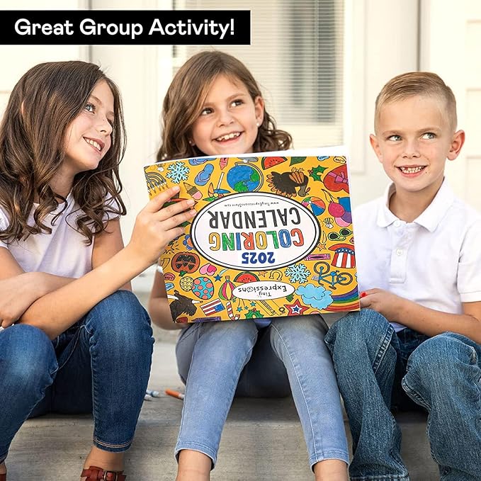 Tiny Expressions - Kids Coloring Calendar 2025-12 Month Color Your Own Wall Calendar for Children, Boys & Girls with Fun Planning Boxes for Daily, Weekly, and Monthly Tasks