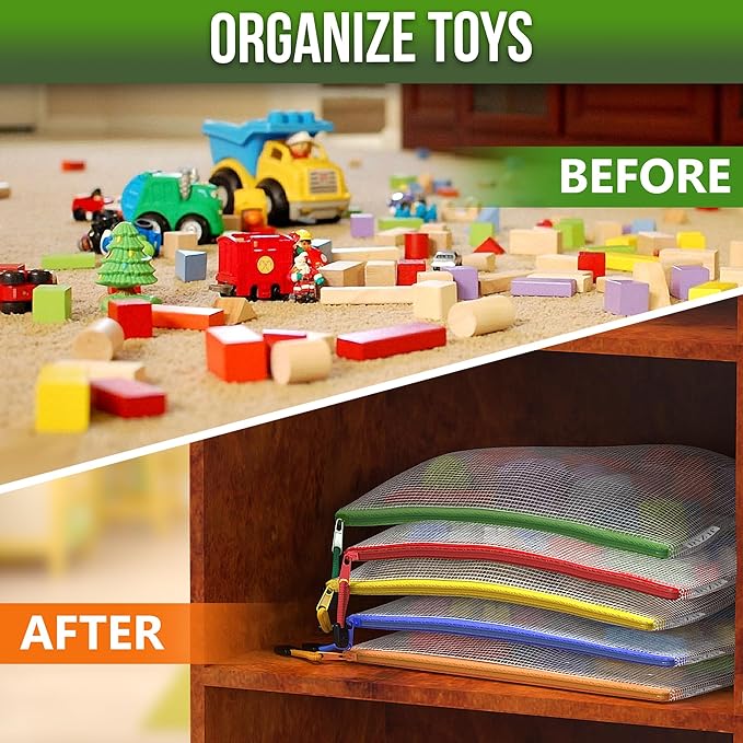- VERSATILE & PRACTICAL - These mesh zipper bags not only help you to stay organized, but they are also a great solution for storage. They are useful in home storage, documents organization, and travel organization.