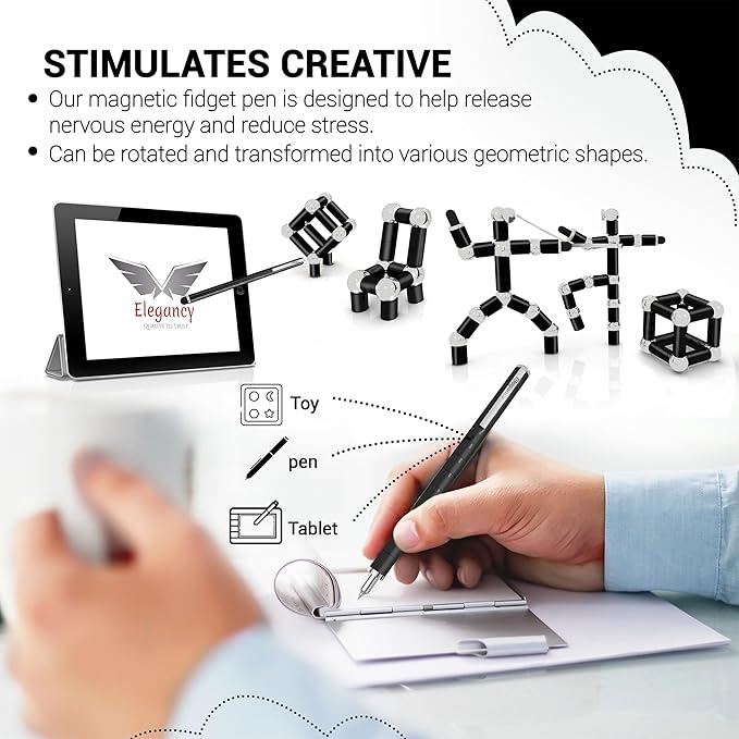 - 🖋️ DEFORMABLE WRITING PEN - This anxiety pen is not just a pen, also be finger fidget toys. This Magnet Pen can be rotated and transformed into a variety of creative, free combination, multiple and diverse plays. This magnetic pen can change shape conforming to your images anytime, anywhere, like swords, robots, monsters, etc. It is a good magnet toy to pass the time.