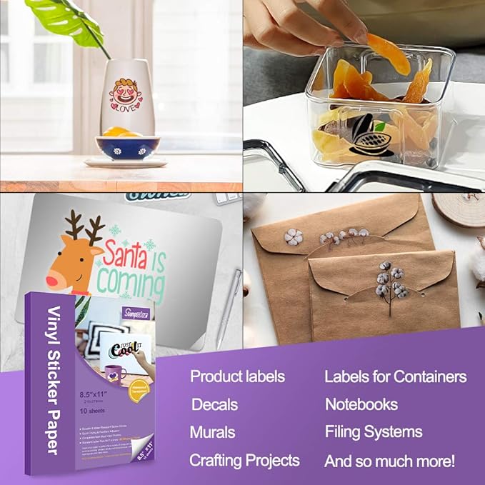 - 【𝐒𝐞𝐥𝐟-𝐀𝐝𝐡𝐞𝐬𝐢𝐯𝐞&𝐖𝐚𝐭𝐞𝐫-𝐑𝐞𝐬𝐢𝐬𝐭𝐚𝐧𝐭 𝐒𝐭𝐢𝐜𝐤𝐞𝐫𝐬】It suitable for High resolution and clear image quality,And create beautiful water-resistant labels and stickers,Allows use vinyl stickers both Indoors and Outdoors,Simply seal the sticker with a UV resistant sealer spray to boost Waterproofness and Durability.Labels can be removed without any sticky residue.Package contains 10 blank clear sticker,US Standard Letter Size - 8.5"x11"