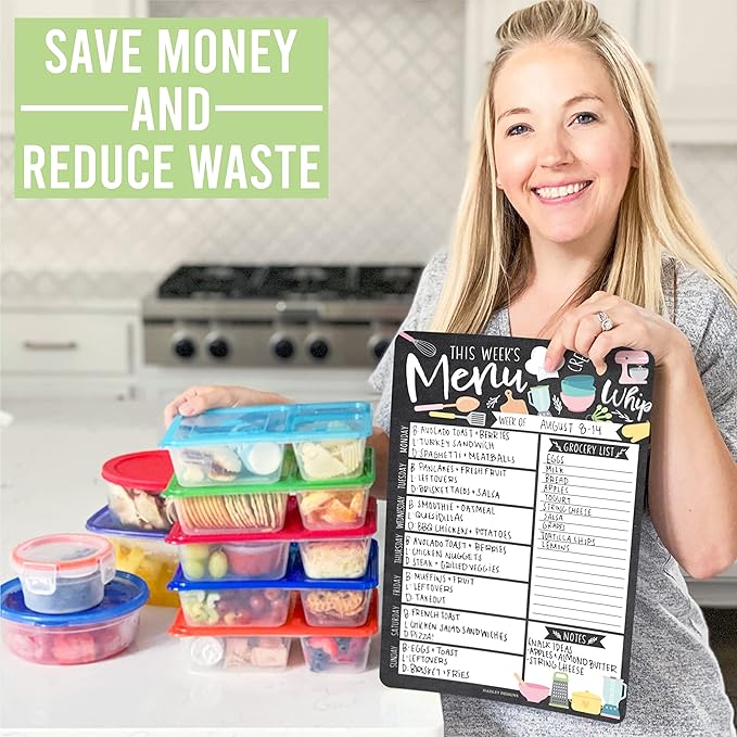 - Effortlessly Stick To Your Diet; You'll receive 1 - 15x10" Magnetic Menu Planner For Fridge, 1 - 8x6" Kitchen Conversion Magnet Chart, 1 - Dry Erase Marker, and 1 - Extra-Durable Eraser; Easily plan for a healthy family with this weekly menu board for fridge whiteboard magnetic planner