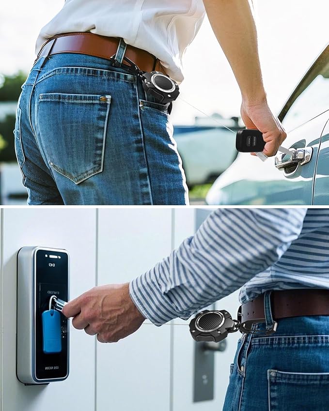 - Carry up to 15 keys: Our unique reel system with high strength wire rope features stronger rebound force which can withstand 8 oz. of tension, about 15 keys, perfect for everyday use and for carrying keys when traveling.