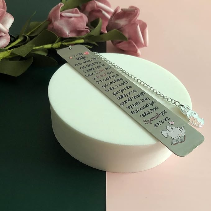 Wife Bookmarks Birthday Gift Woman Christmas Encourage Bookmark Valentines Day Distance Miss You Cute Rabbit Present Appreciate Wedding Anniversary Love Reminder Keepsakes I Love Proud of You for Her