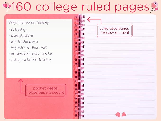 - INCLUDES 160 PAGES: Spiral notebook includes 160 high-quality, lined pages that withstand ink bleed-through; pages feature college ruled lines with a perforated edge to easily take to-dos, notes, and reminders on-the-go