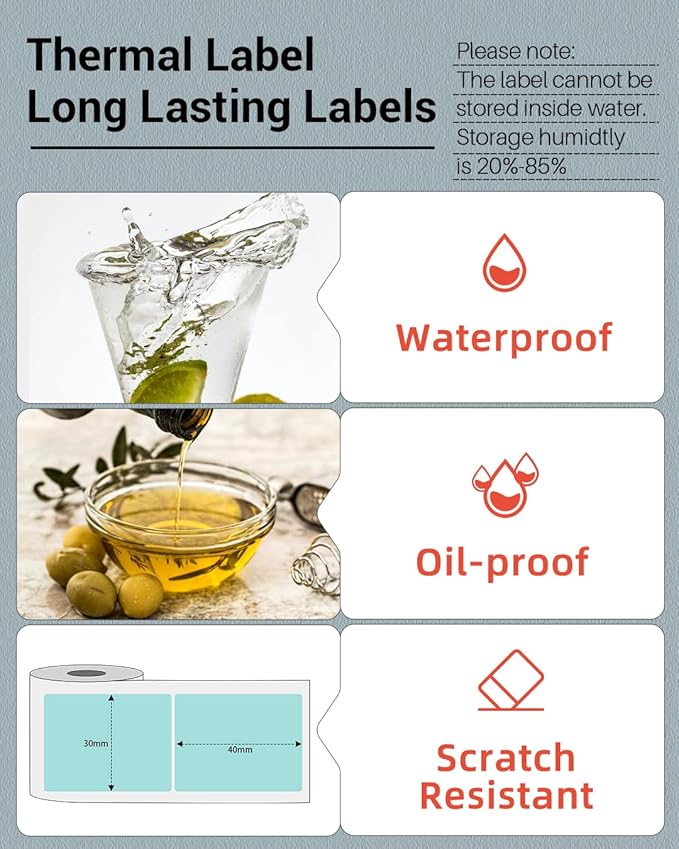 - √ Clear Printing- Phomemo self-adhesive Multi-Purpose labels are water resistant, oil resistant, abrasion resistant and strong adhesion
