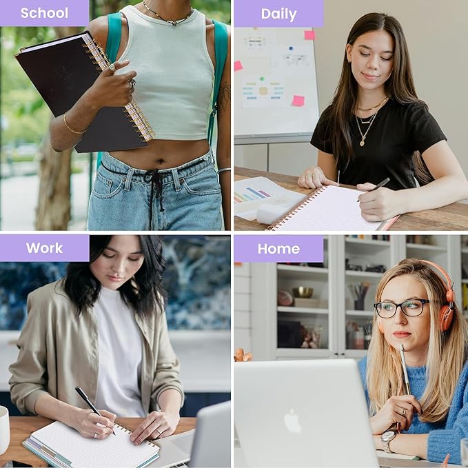 - HARDCOVER SPIRAL NOTEBOOK: Package includes a spiral notebook with 240 pages and the size is 10.3"x7.6", standard college ruled paper with 7.1mm spacing, 100gsm which avoids ink bleeding and can give you a good writing experience.