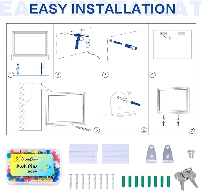 - 💧OUTDOOR USE —Weather resistant cabinet construction features aluminum frame with a satin finish, full-length piano hinges add strength and durability to the door frame. Drainage holes in the bottom and sealed backing means you can mount the board outdoors.