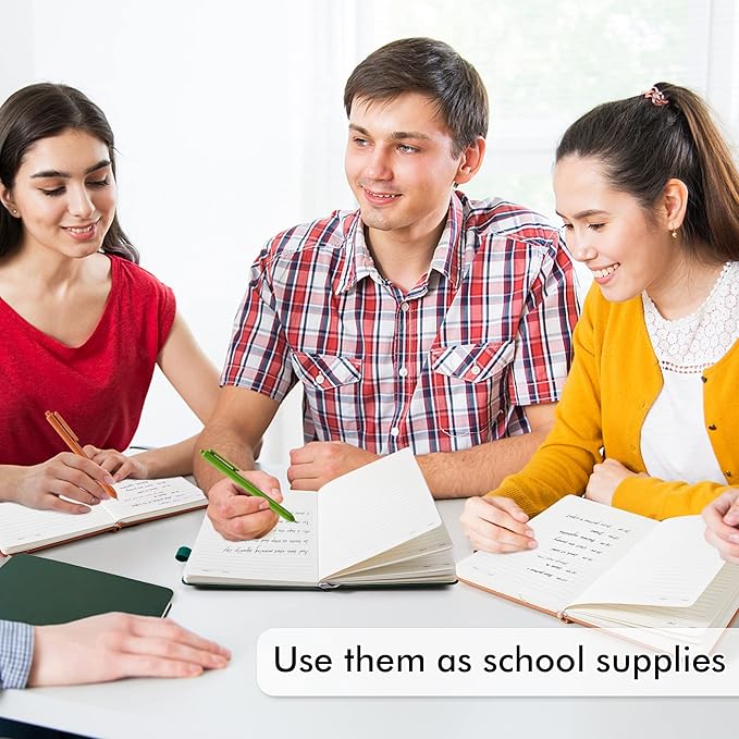 - 3 different vintage colors for these notebooks. There are 3 Black Retractable Pens in the box. You can use it as soon as you receive it. These pens are perfect to be put in the pen holder of the classic ruled notebook. Large tube has the capacity of restoring more ink, which makes them long lasting. Quick drying can avoid smearing and smudge.