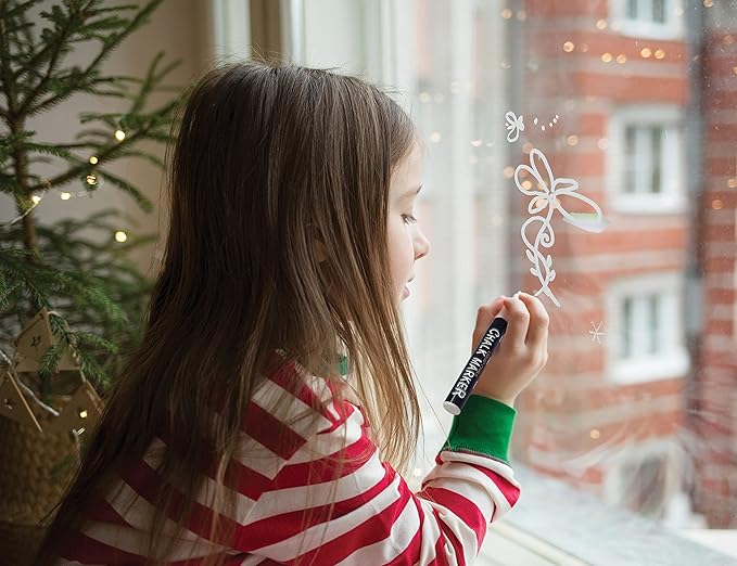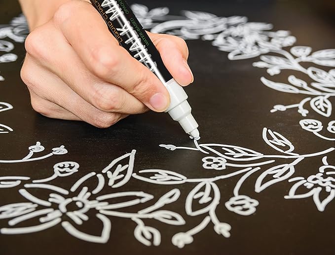 - CHALK MARKER, CHALK & ERASER INCLUDED - Comes with a white liquid chalk marker, a small box of chalk, and an eraser