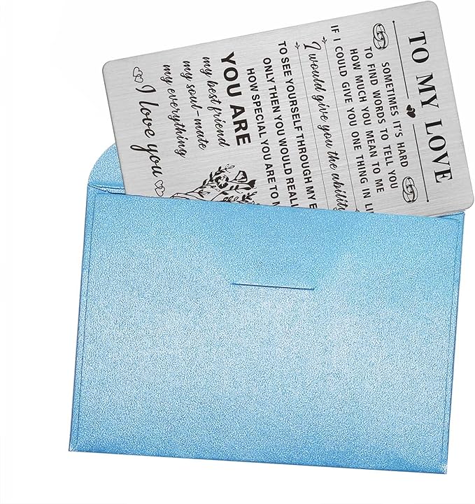 - Unique Female Lover Gift: What better way to express your love for someone than with a unique personalized steel wallet inserts. The card with romantic words is clear and easy to read, will not fade or scratch off!