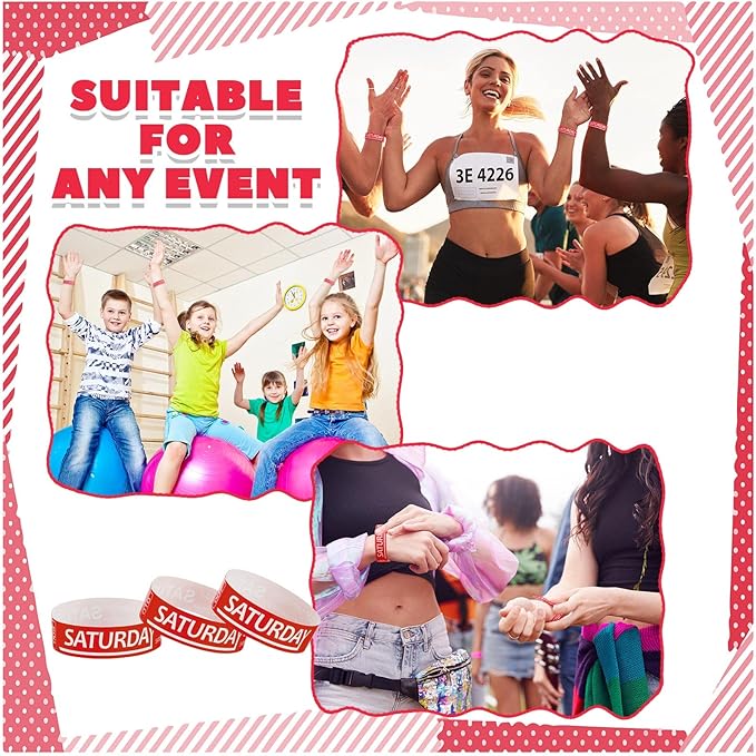 Henoyso 600 Pcs Saturday Paper Wristbands Event Wristbands Paper Bracelets Wristbands Numbered Waterproof Party Wristbands for Events Day of The Week(Red)