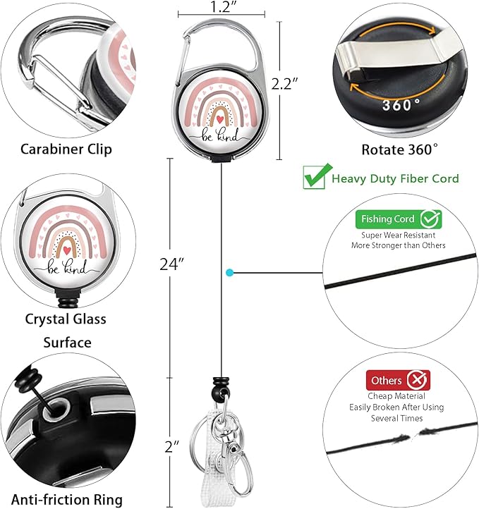 - Novelty Design: It's time to throw away the dull badge holders and badge reels. They are printed with rainbow arts: Be Kind, which are cute and stylish. If you want to change your tedious life, you can start with this colorful and unique badge holder, which comes with a cute lanyard and a lovely retractable badge reel